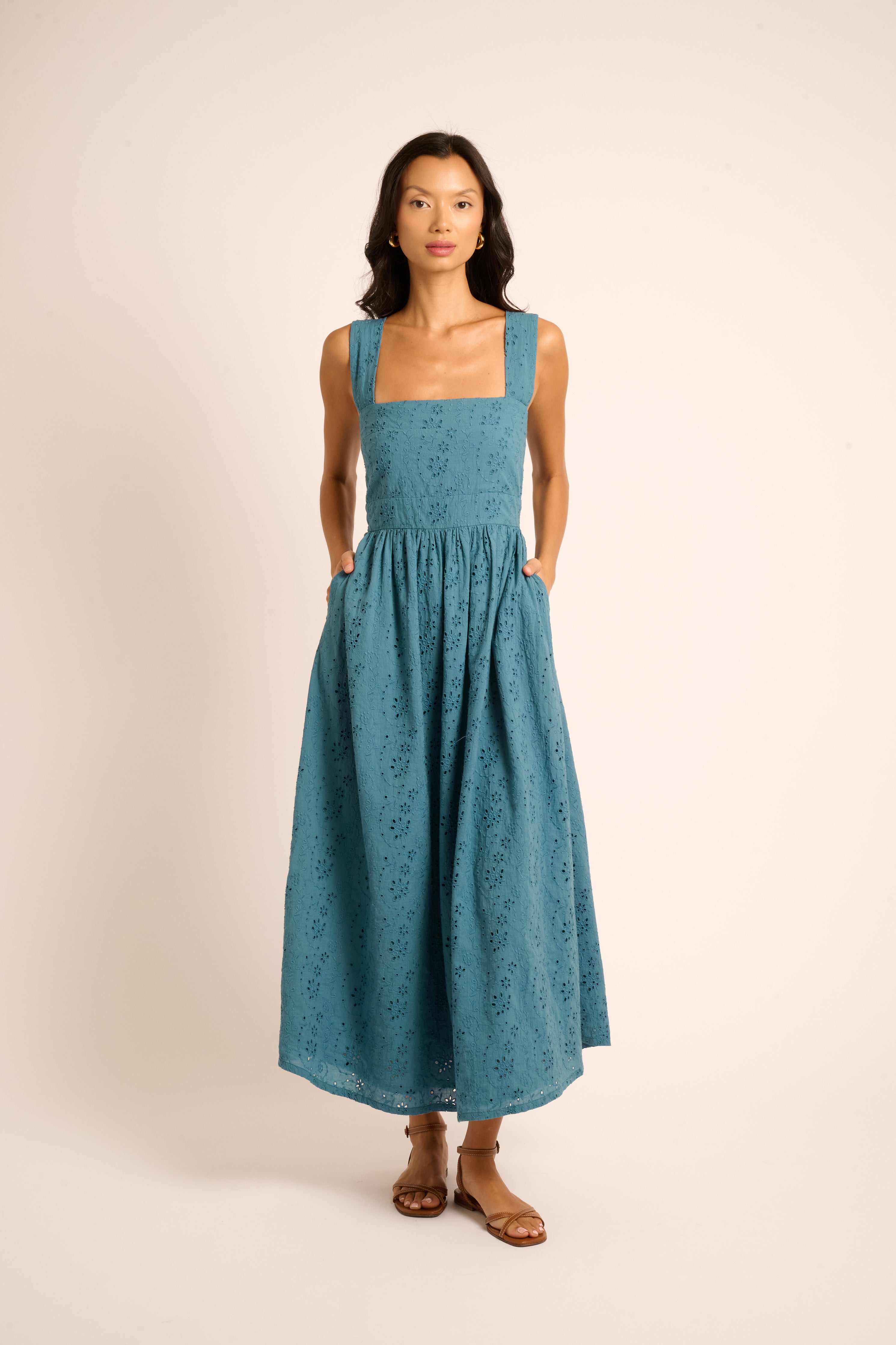The Annabel Dress in Cerulean Blue is a go-to for all days in the sun. The adjustable neckline that can be worn as a halter or regularly sleeveless and elastic back ensure a perfect fit, while the double-lined bust provides comfortable coverage. Practical pockets and a flattering silhouette make this dress a versatile piece that can be transitioned from day to night.