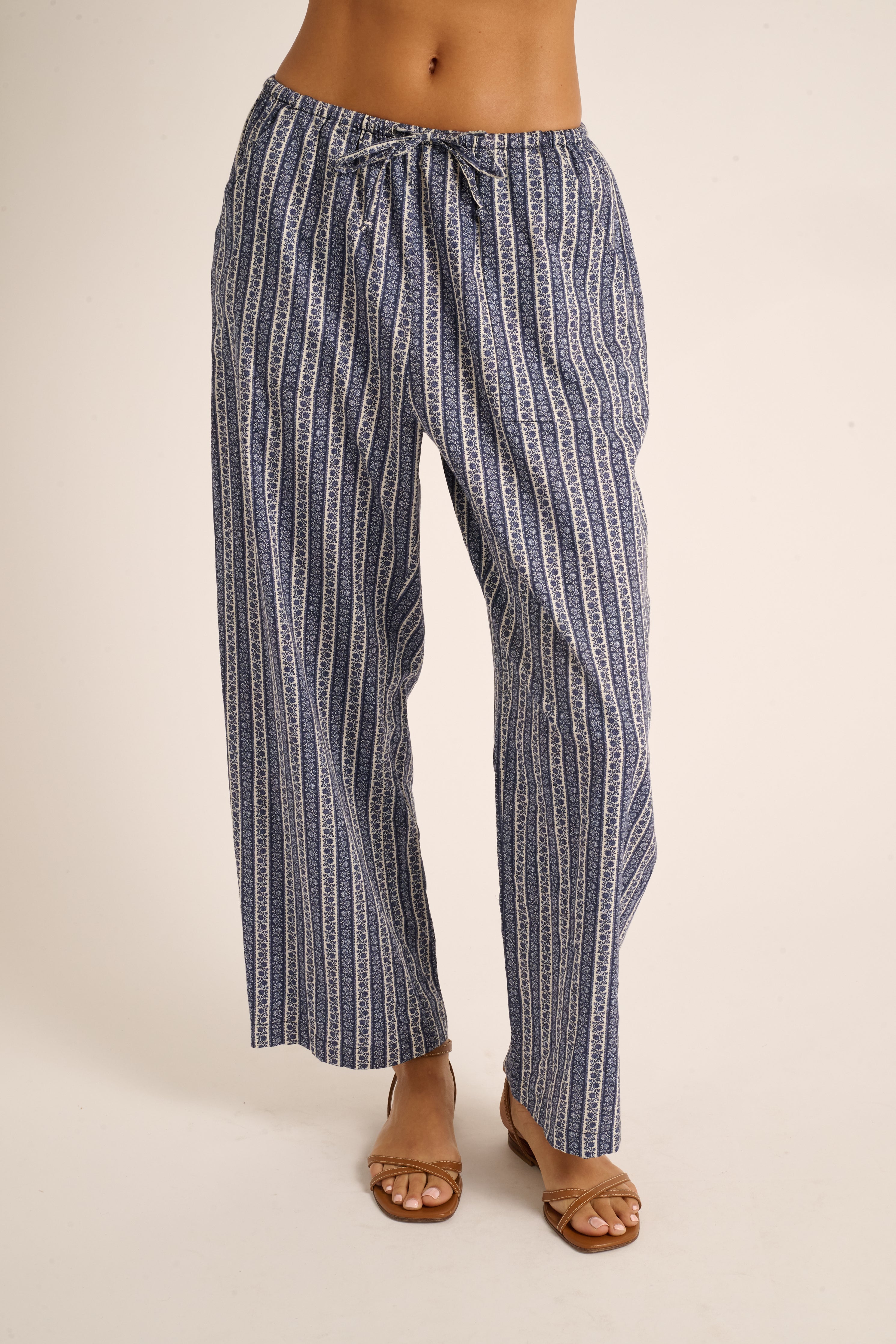 Introducing Darcy — Laid-back and lightweight, these drawstring pants with generous front pockets are made for easy days and effortless style. The relaxed, wide-leg fit moves with you, designed to graze your ankles. Our exclusively drawn floral stripe print is reimagined this season in a narrow stripe with a midnight navy ground.