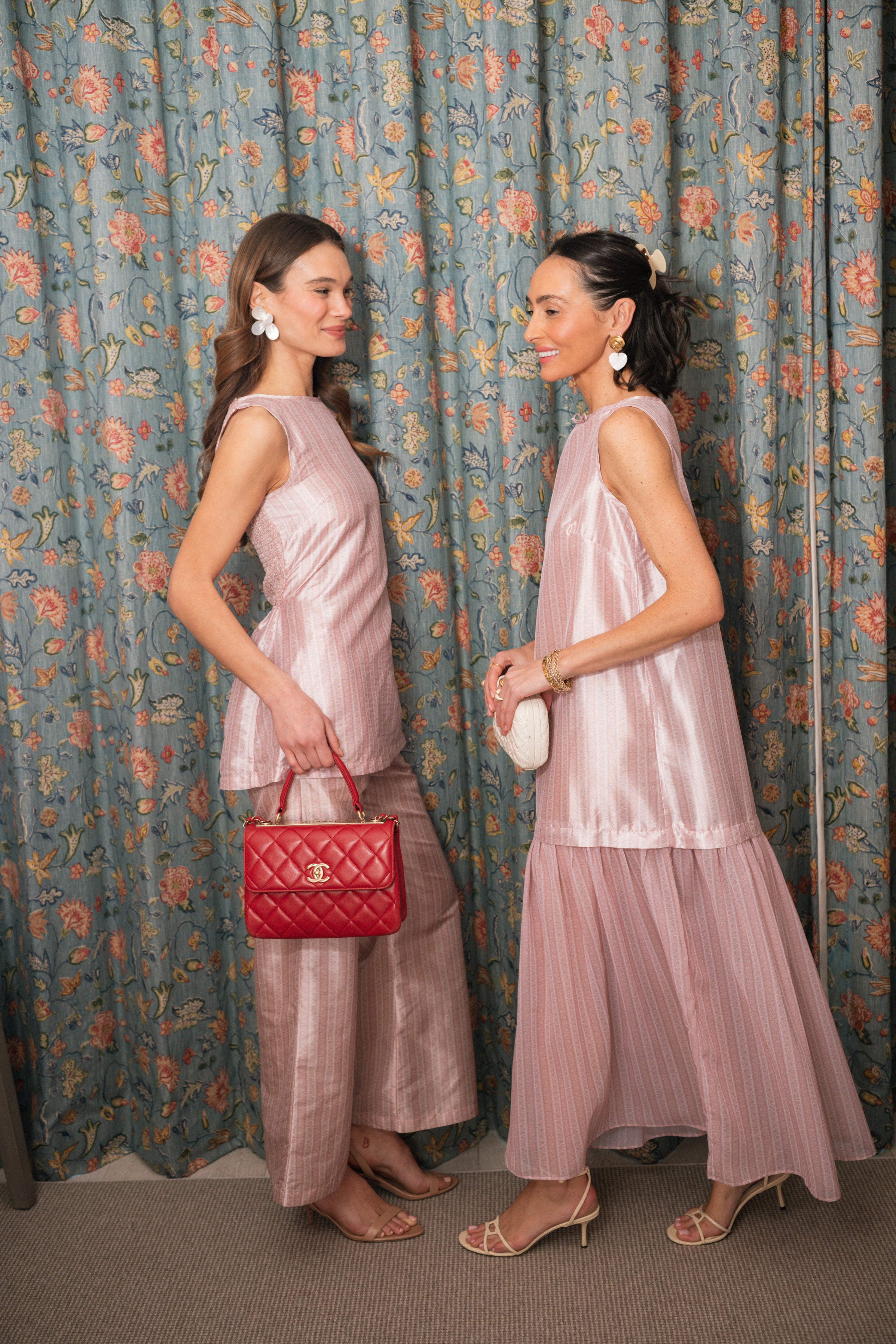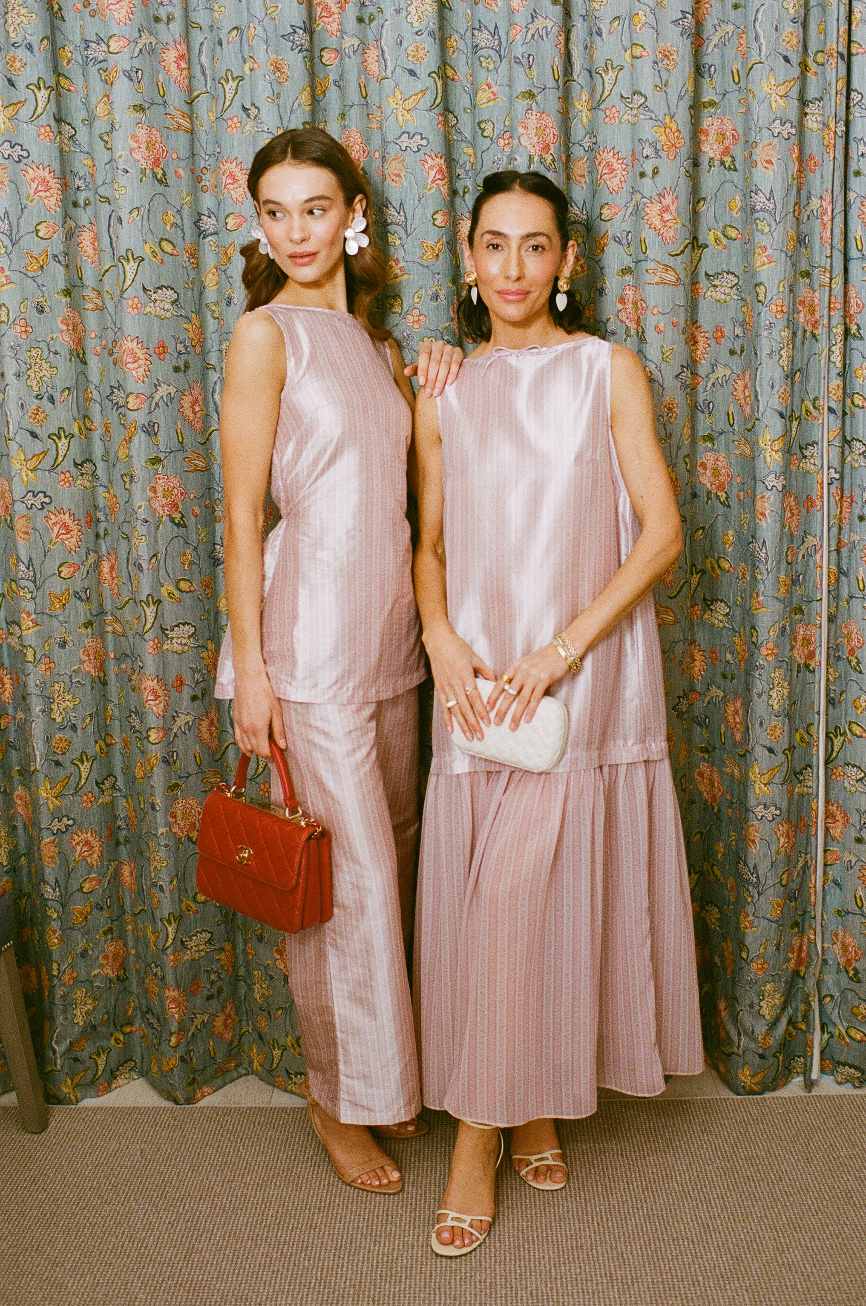 Eloise returns and exudes effortless elegance! Sophisticated and sweet, she is a maxi dress that captures the charm of a slow but stylish date night. Its flowy silhouette is perfectly juxtaposed with the dainty Blush Floral Stripe and is a piece that wears as easy as it looks. The body is made from taffeta and the skirt is crafted from georgette to create romantic, airy movement.
