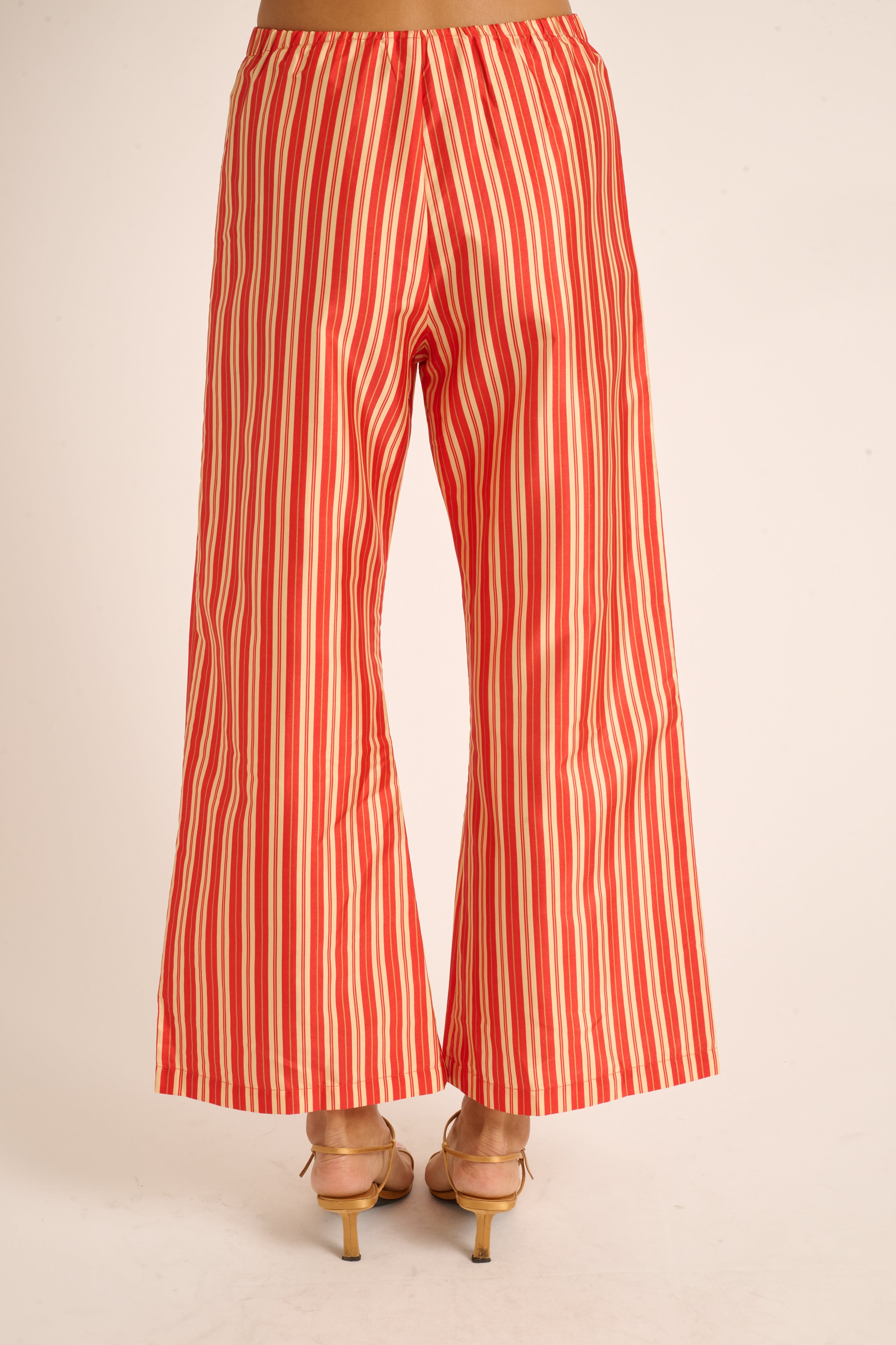 You've never seen Nicole like this before! Our classic pant reimagined in a versatile yet formal fabric and designed in our Candy Stripe. With an elasticized waist, pockets and subtle kick flare, she offers a perfect balance of comfort and cool.