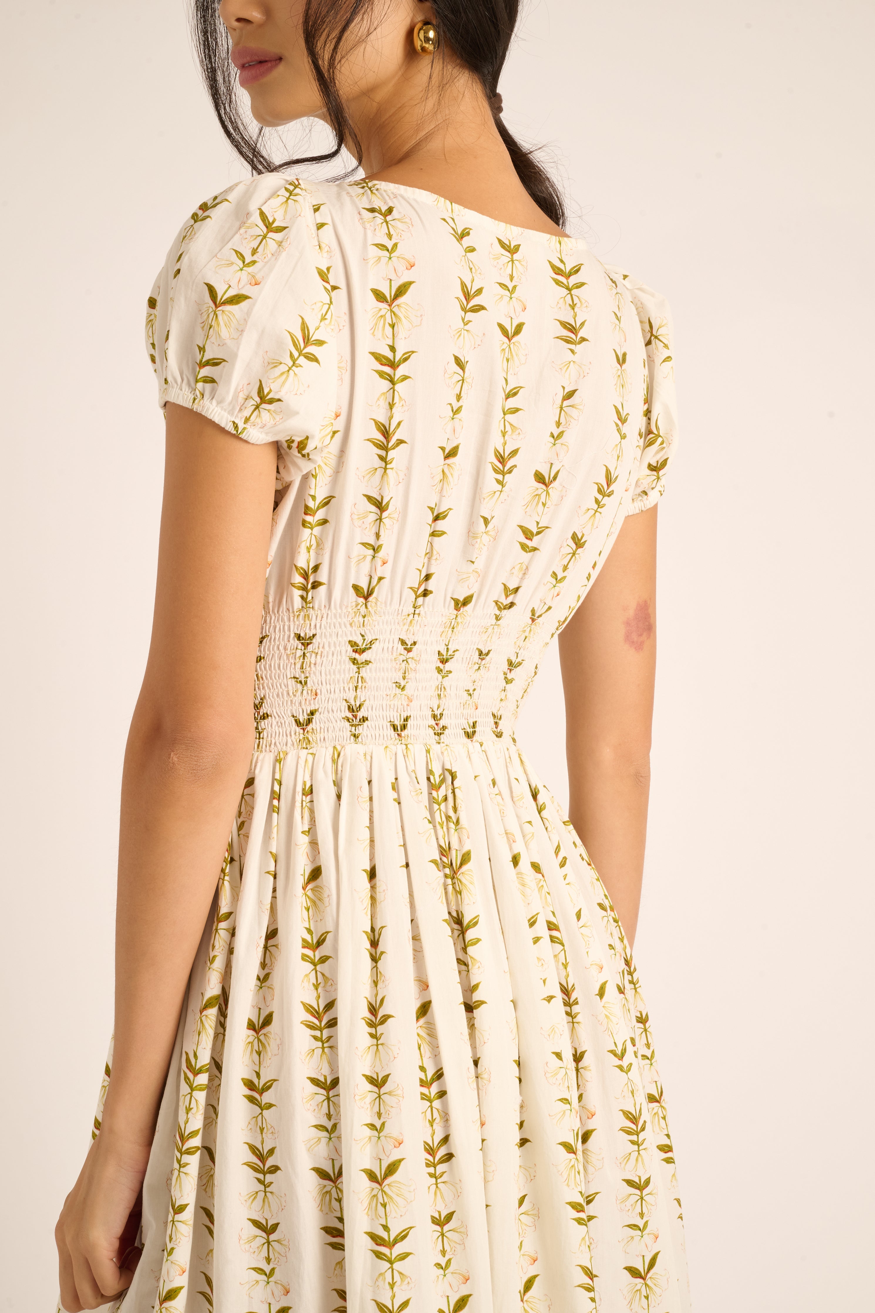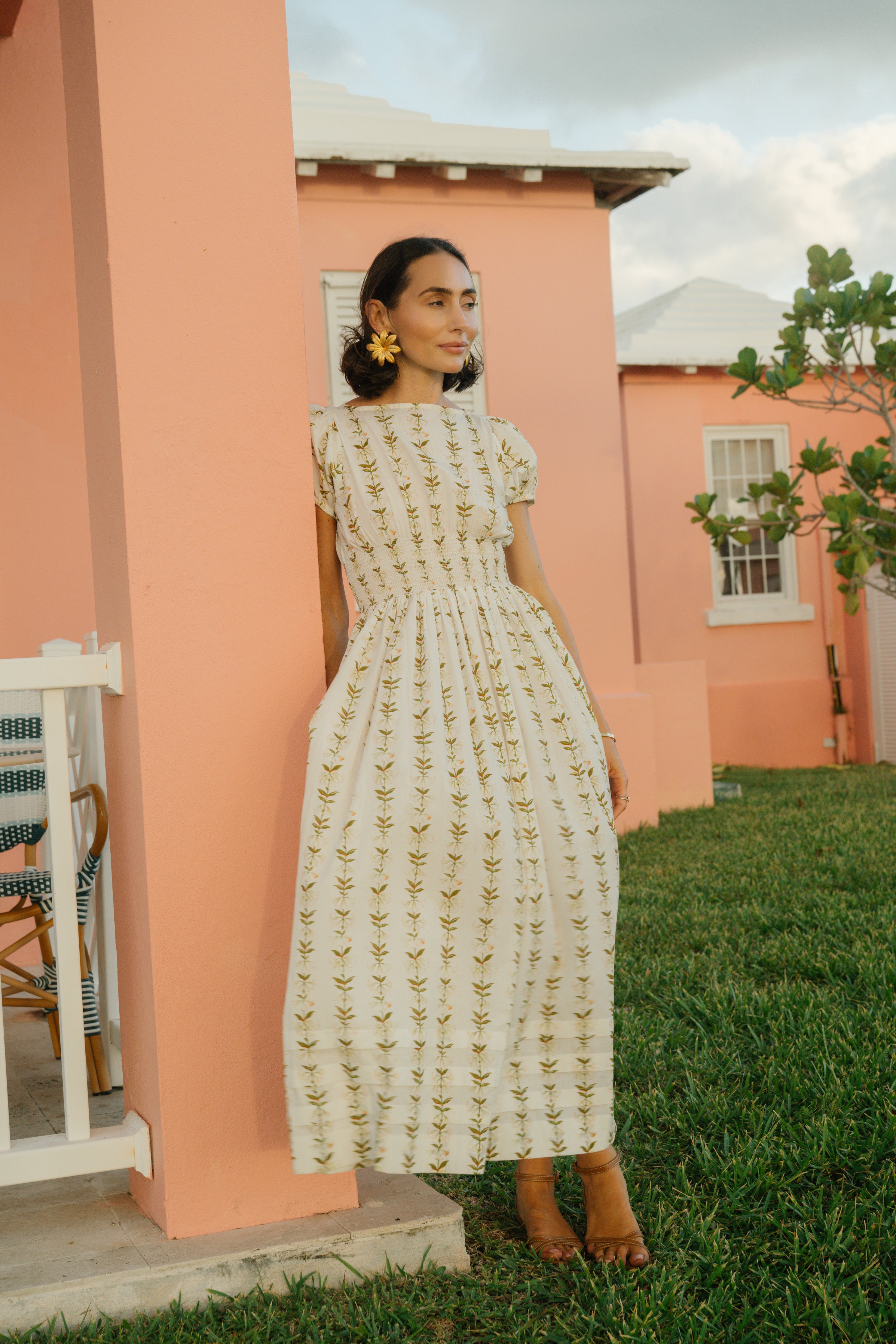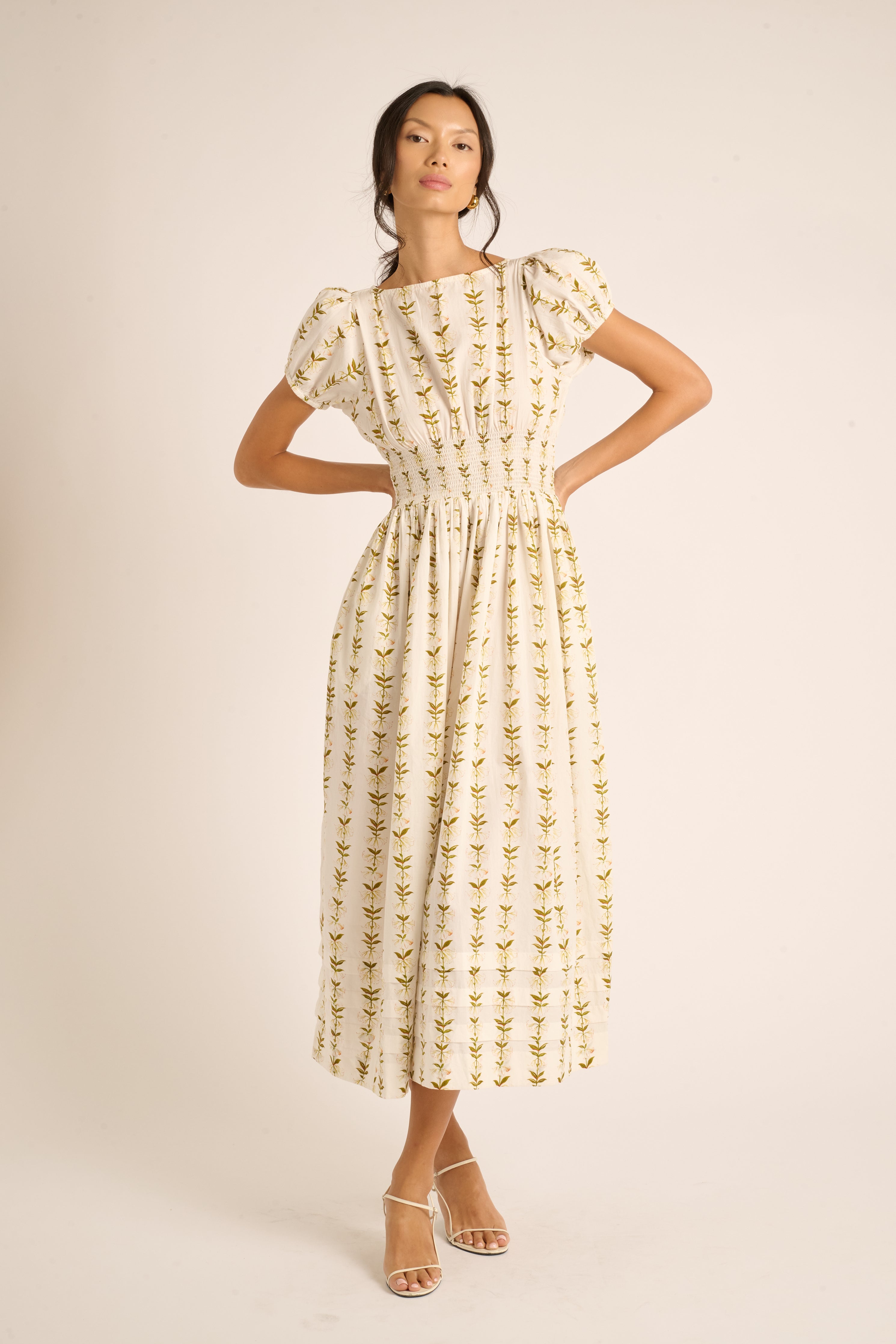 Introducing Willa! Step into effortless charm with our newest maxi dress, featuring our exclusive Lily of the Valley print. Designed with a flattering smocked waistline, this silhouette creates a naturally feminine shape while offering day to night comfort.